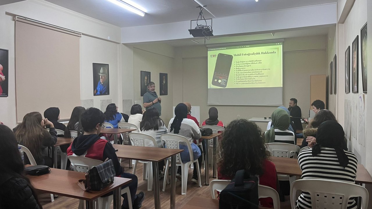 Ardından gönüllülere fotoğrafçılığın tarihi sürecini, doğru fotoğraf da nelere dikkat edilmesi gerektiği ve fotoğrafta estetik konularında bilgiler verildi.