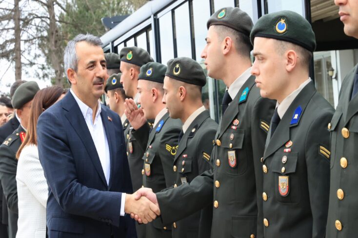 Garnizon Komutanı Tuğgeneral Yüksel Kolcu tarafından karşılanan Sezer, askerlerin bayramını kutladı.