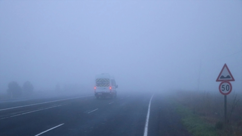 Edirne’de sis nedeniyle görüş mesafesi yer yer 50 metrenin altına düştü.