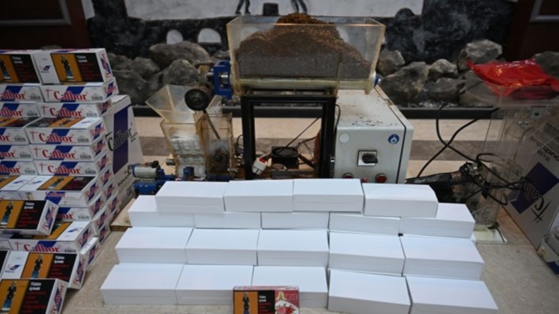 Yapılan aramada, şüphelinin evinde 73 bin 400 adet makaron ve 8 adet sigara sarma makinesi ele geçirildi.