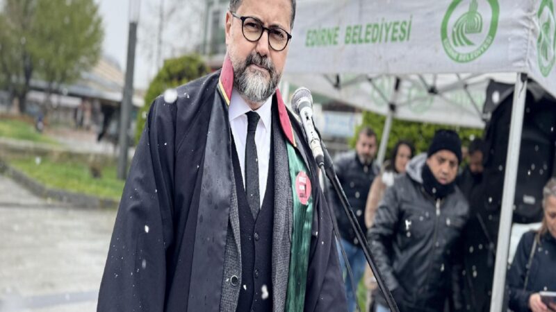 Edirne Barosu Başkanı Gökhan Karakoç, Atatürk Anıtı'nda düzenlenen törende, 5 Nisan Avukatlar Günü'nde mesleğin onurunu ve hukuk devletinin temel ilkelerini savunma kararlılığını bir kez daha altını çizdiklerini belirtti.