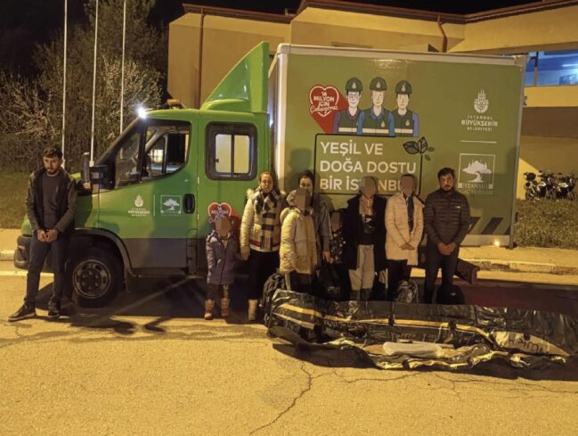 Kamyonette yapılan aramada, 5 Suriye ve 3 Irak uyruklu 8 düzensiz göçmen ve bir şişme bot yakalandı.