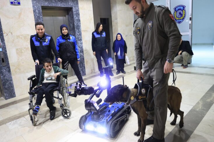 Toplum Destekli Polislik Şube Müdürlüğü ekipleri, Karaşin'e telsiz vererek polis şapkası taktı. Haber Merkezi ve Çocuk Şube Müdürlüğünü gezen Karaşin, Olay Yeri İnceleme Laboratuvarında parmak izi bulma tekniklerini öğrendi.