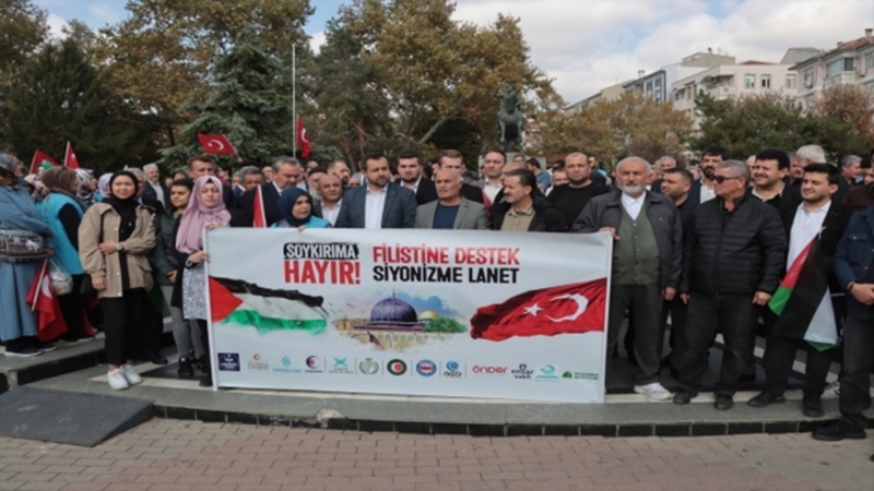 Kırklareli’nde de sivil toplum örgütleri ve siyasi parti temsilcileri, İsrail’in Gazze’ye yönelik saldırılarını protesto etti.