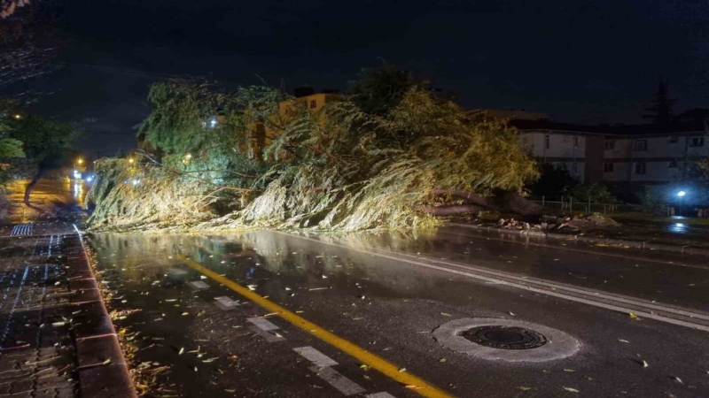 Ağaçlardan bazıları devrilirken bazılarının dalları kırıldı.
