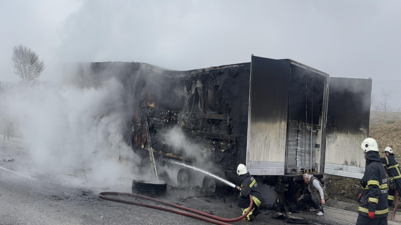 Limonata yüklü tırın dorsesi yanarak kullanılamaz hale geldi.