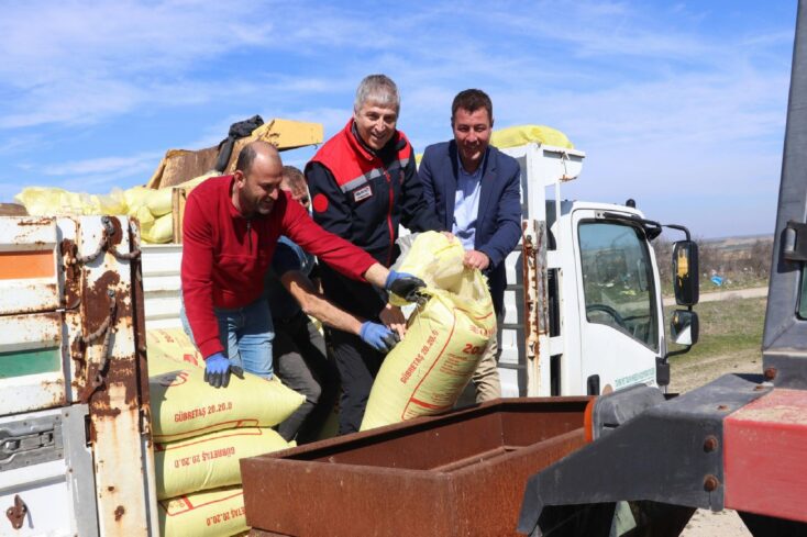 Edirne'de mera ıslah çalışmaları kapsamında 14 köy merasına 140 ton gübre atıldı.