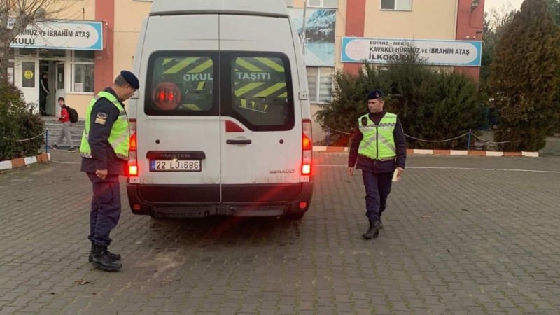 Bu kapsamda trafik jandarması, Meriç ilçesine bağlı Kavaklı köyünde okul servis araçlarını ve sürücüleri denetledi.