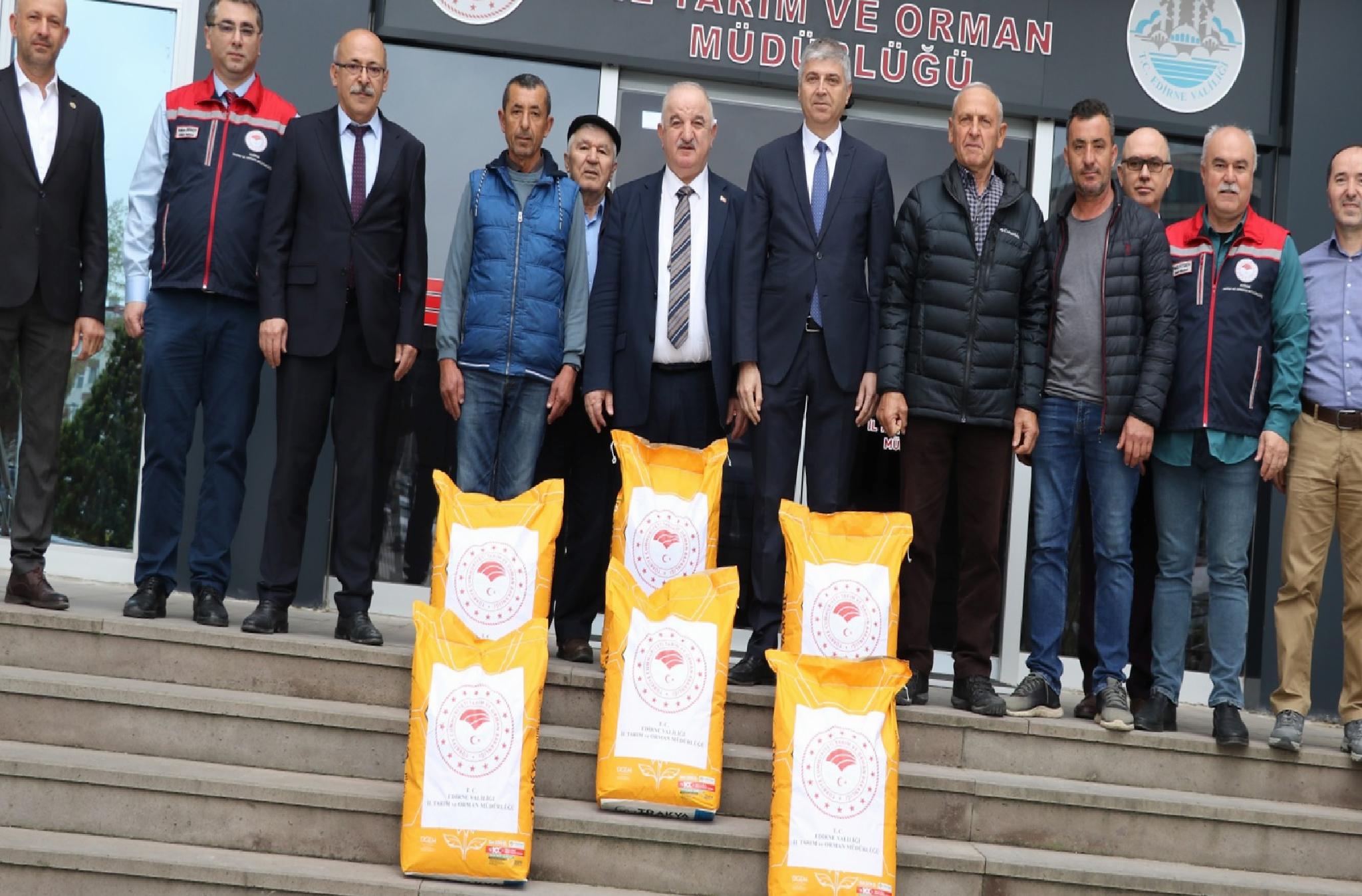 Edirne'de, Tarım ve Orman İl Müdürlüğü tarafından uygulanan “Yerli Hibrit Ayçiçeği Tohumu Kullanımının Yaygınlaştırılması Projesi” kapsamında üreticilere yüzde 75 devlet destekli 672 torba ayçiçeği tohumu dağıtıldı.