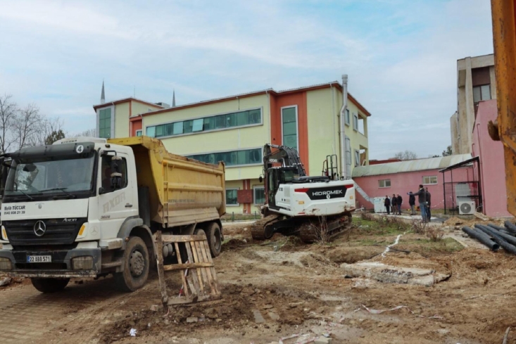 Çalışmaları yerinde inceleyen Trakya Üniversitesi Rektörü Prof. Dr. Mustafa Hatipler, inşa çalışmaları hakkında bilgi aldı.