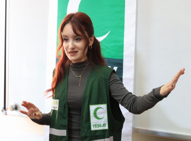 Yeşilay ile ilgili sunumların yapıldığı derste öğrencilere hediyeler verildi.