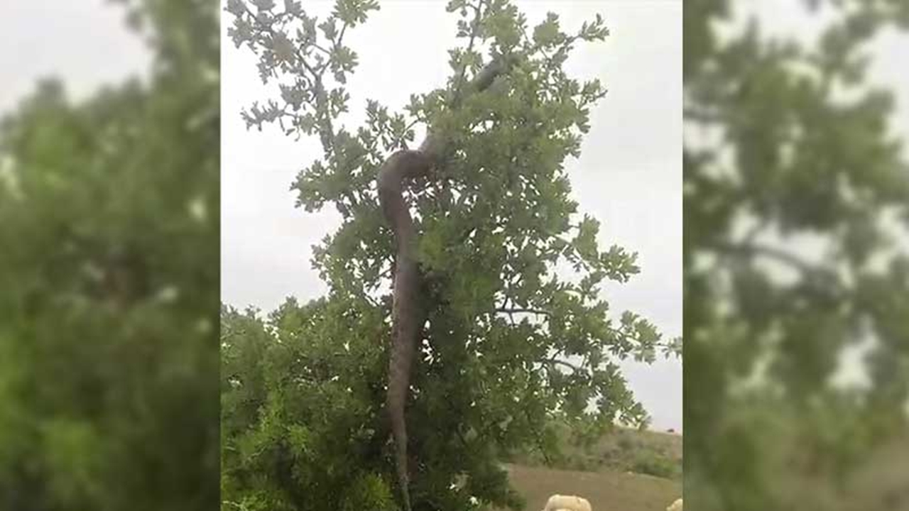 Hayvan otlatırken birkaç koyunun korkuyla kaçıştığını fark ettiğini anlatan Elitaş, “Çevrede yabancı bir hayvan olduğunu anladım. Sağa sola baktığımda alıç ağacının tepesinde büyük bir yılan olduğunu gördüm. O anda ben de tedirgin oldum. Yılanı uzaktan cep telefonu ile görüntüledim. Daha sonra hayvanlarımla bölgeden uzaklaştım.” dedi.