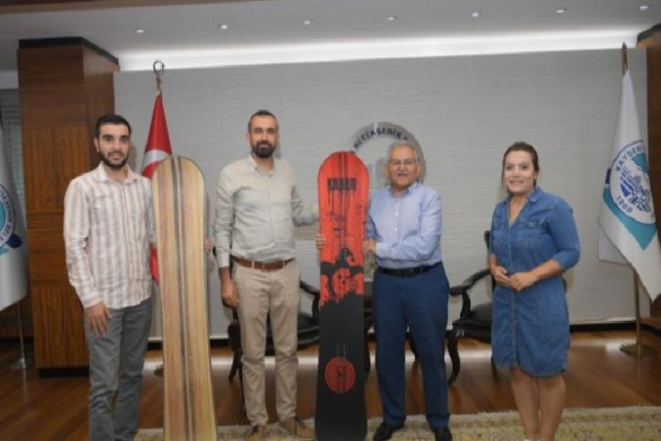 Başkanlık makamında gerçekleşen ziyarette, Lider Büyükkılıç, “Erciyes Kış Sporları Projesi meyvelerini vermeye devam ediyor. Yerli ve ulusal boardımız üretildi. Bu kış Erciyes pistlerinde yerli ve ulusal board kullanılacak” dedi.
