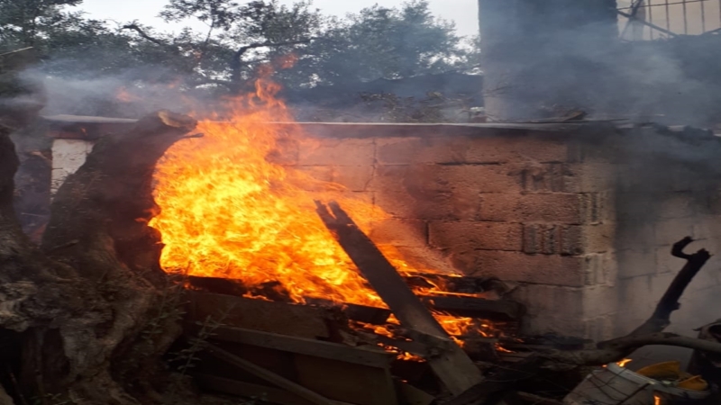Atatürk Mahallesi Kızarandere Caddesi Oduncuyolu üstü Aktaş mevkisinde Z.B’ye ait zeytinlik içindeki bağ evinde henüz belirlenemeyen nedenle yangın çıktı.