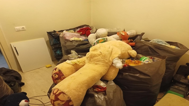 Ekipler, B.K’nin kapıyı açmaması üzerine içeri polis nezaretinde çilingirle girdi. Çürümüş gıda, giysi, pet şişe, teneke kutu, poşet ve kağıtlardan oluşan çöpleri toplayan ekipler, dezenfekte çalışması yaparak B.K’ye evin yeni anahtarını teslim etti.