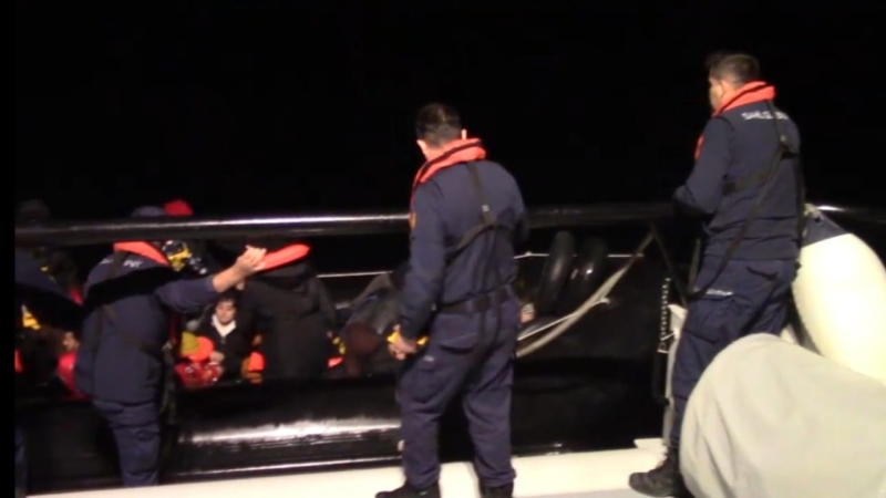 “TCSG-908” botu ekiplerince durdurulan lastik bottaki 38 Afganistan uyruklu kıyıya getirildi.