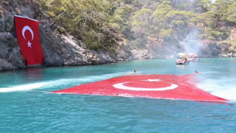 Fethiye’de 30 Ağustos Zafer Bayramı Dolayısıyla Denizde Türk Bayrağı Açıldı