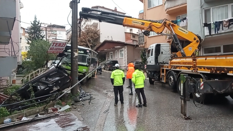 Donanma Mahallesi Anafartalar Caddesi’nde yokuş aşağı inen M.K’nin yönetimindeki 41 E 2328 plakalı özel halk otobüsü, freninin boşalması sonucu sürücüsünün kontrolünden çıktı.
