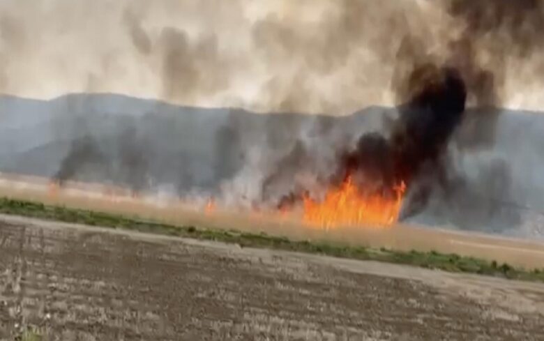 İtfaiye ekiplerinin müdahalesi ve yağışın da etkisiyle alevler söndürüldü.