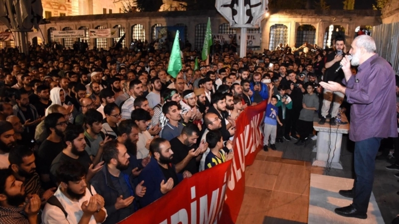 Kaya, “Bizler İzzeddin el-Kassam ve Hamas ile iftihar ediyoruz. Onlara dua ediyoruz. Bugün tüm İslam ümmetinin üzerindeki ölü toprağını kaldıran bu direnişe teşekkür ediyoruz. Bu nedenle ‘Hamas’a selam, direnişe devam.’ diyoruz.” diye konuştu.