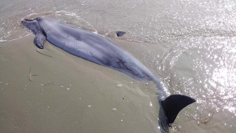 Bir süre denizde kano yapan Tarhan, denizden çıktığı sırada ölü bir yunusun kıyıya vurduğunu gördü.