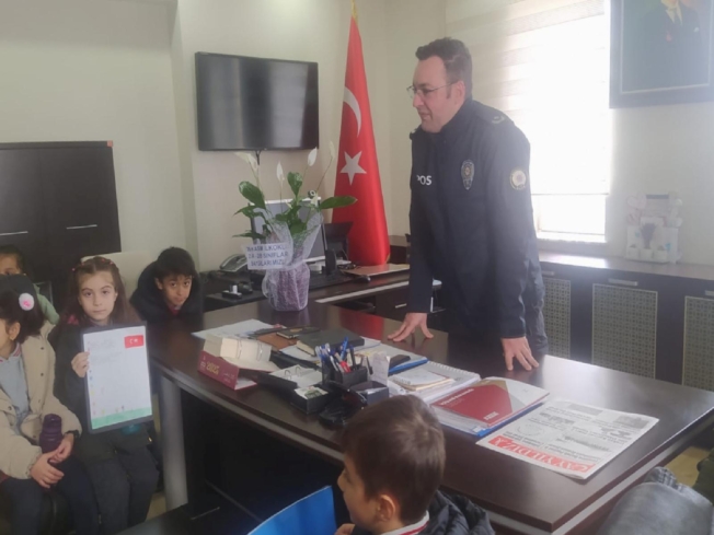 Çanakkale'nin Gelibolu ilçesindeki 26 Kasım İlkokulu öğrencileri, Gelibolu Emniyet Müdürlüğünü ziyaret etti.