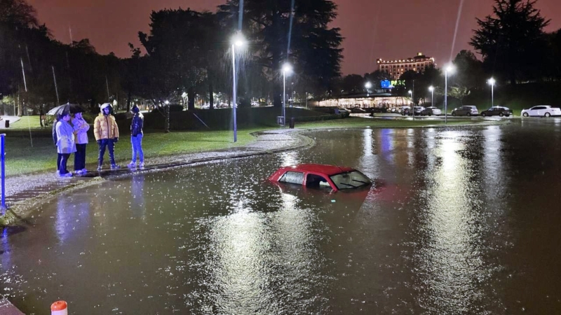 Yağışın da etkisiyle görüş mesafesi düşen sürücü, geri gelmek isterken aracıyla havuza girdi.