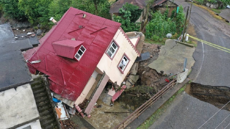 Giresun’da sağanak nedeniyle bir ev yan yattı, bazı ev ve iş yerlerini su bastı.