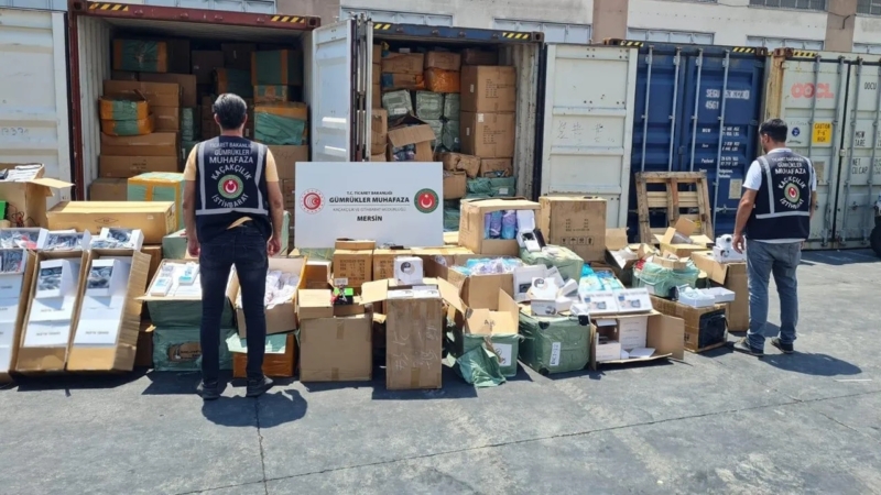 Bakanlıktan yapılan açıklamaya göre, Mersin Gümrük Muhafaza Kaçakçılık ve İstihbarat Müdürlüğü ekiplerinin kaçakçılıkla mücadele kapsamında gerçekleştirdiği risk analizi ve istihbarat çalışmaları sonucunda usulsüzlük yaptığı tespit edilen firmaya ait konteynerler mercek altına alındı.
