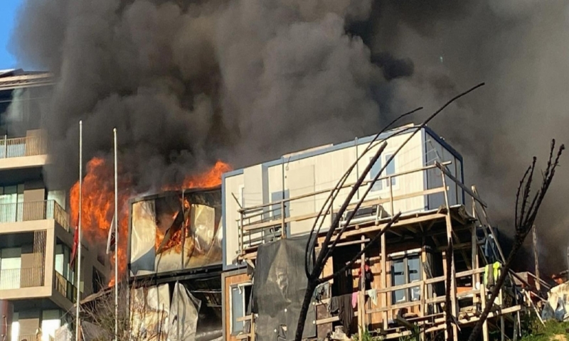 Yangında, inşaat sahasındaki 25 konteynerden 20'si kullanılamaz hale geldi.