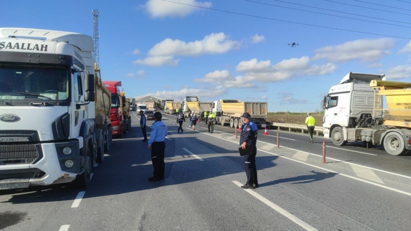 Denetimler sırasında belgeleri kontrol edilen hafriyat kamyonları arasında, muayene ve sigorta eksikliği tespit edilen iki araç bulundu. Ayrıca bir kamyonun Araç Takip Sistemi’nin çalışmadığı belirlenerek şoförüne 1295 lira ceza kesildi.