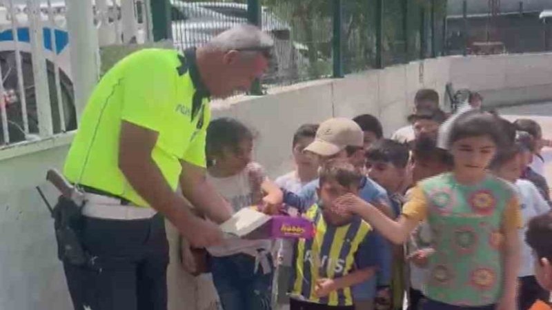 Trafik güvenliğini sağlamak amacıyla okul önünde konuşlanan ekipler, öğrencilerin giriş ve çıkış saatlerinde hem trafiği düzenledi hem de öğrencilere küçük bir sürpriz yaptı. Ellerinde çikolatalarla sırada bekleyen çocukların yanına gelen polisler, onlara ikramda bulunarak yüzlerde tebessüm oluşturdu.