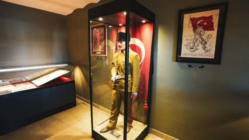 Sergide, Atatürk’ün yanı sıra Çanakkale Müstahkem Mevkii Komutanı Cevat Paşa’ya ait tabanca ve Mayın Grup Komutanı Hafız Nazmi Bey’e ait subay kılıcı, fotoğraf ve belgeler, Kurtuluş Savaşı dönemi afişleri, objeler ve canlandırmalardan oluşan 100’den fazla eser sergileniyor.