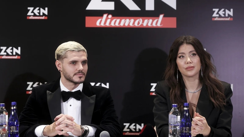Toplantıya ay-yıldızlı bilekliklerle katılan Icardi ve Wanda Nara, işbirliğinden duydukları memnuniyeti dile getirdi.