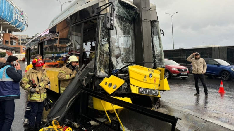 Kaza nedeniyle otobüsün şoförü araçta sıkışırken, bazı yolcular da yaralandı.