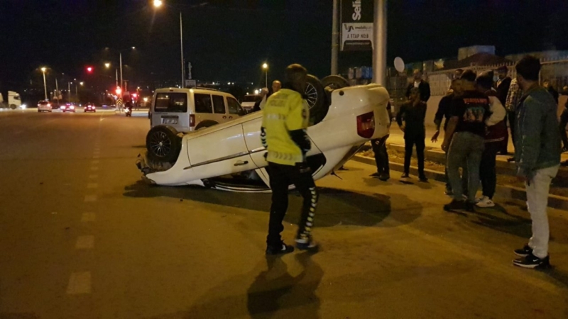 Kazada, ters dönen araçta bulunan Muhammet A. (19) yaralandı.