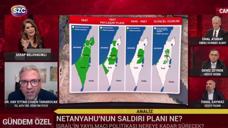 İsmail Saymaz, Deniz Zeyrek ve Ünal Atabay’ın konuk olduğu programa video konferans yoluyla bağlanan Türkiye doğumlu İsrailli akademisyen Hay Eytan Cohen Yanarocak, İsrail-Filistin çatışmasını hakkında kan donduran ifadeler kullandı.