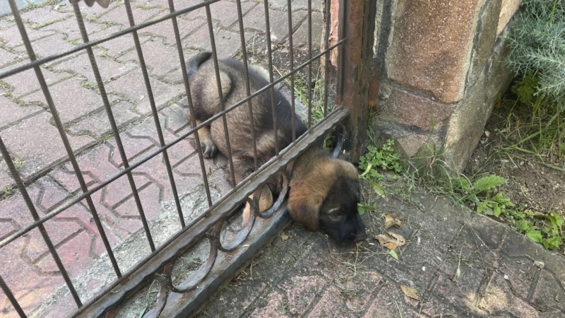 Bolu’da başı demir kapıya sıkışan köpek yavrusunun yardımına itfaiye ekipleri yetişti.