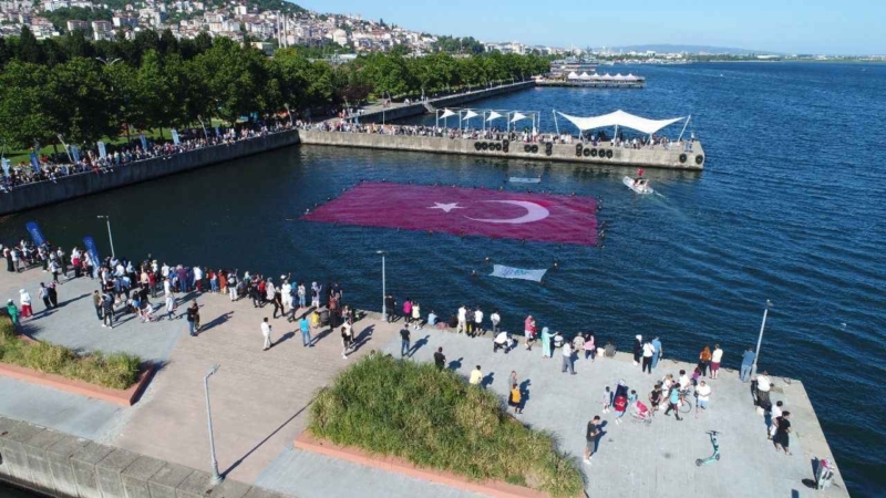 İzmit Körfezi’nde Dev Türk Bayrağı Açıldı