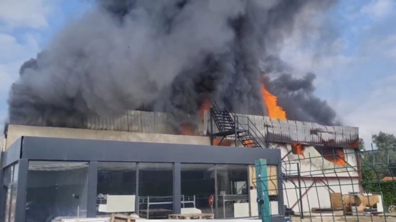 Yangın nedeniyle soğuk hava deposunun çatısı çöktü. Büyük çaplı hasara yol açan yangının çıkış nedeni araştırılıyor.