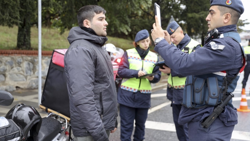 Uygulama sırasında motosiklet sürücülerinin GBT kontrolleri, Jandarma Akıllı Devriye Uygulaması (JADU) ile gerçekleştirildi.