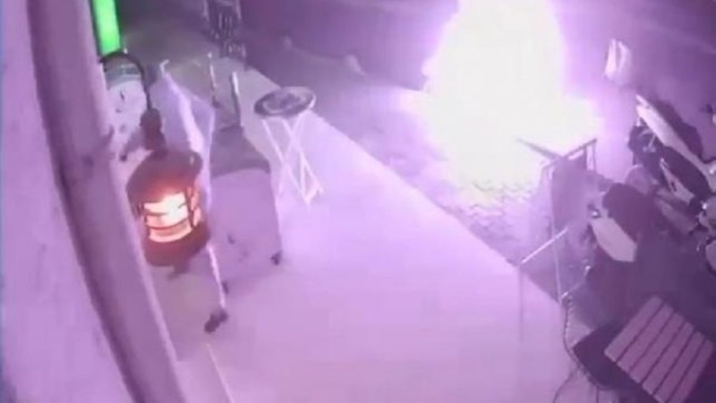 Öte yandan sürücünün yangına müdahale ettiği anlar güvenlik kamerasınca kaydedildi.
