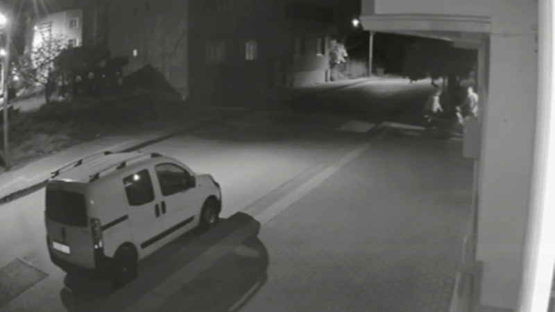 Güvenlik kamerası kayıtlarında, apartmana giren şüphelilerin motosikleti çalıp uzaklaştığı görülüyor.