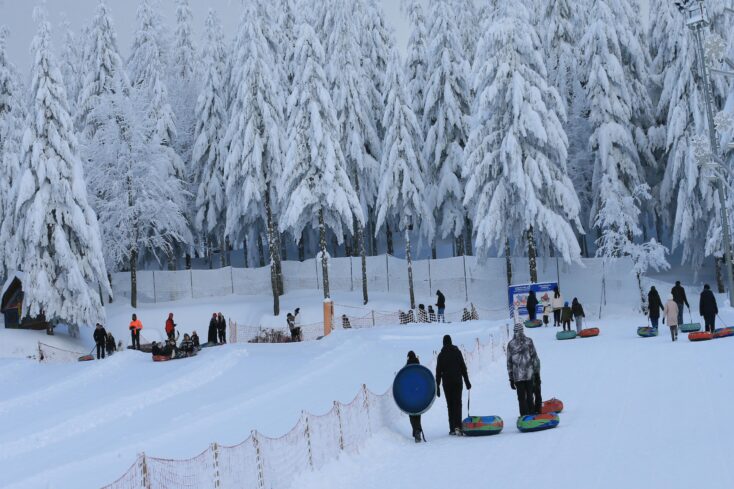 Sisli Vadi bölgesinde yerli ve yabancı turistler kızak ve şambrellerle kayarak eğlendi.