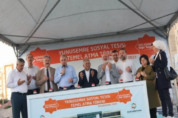 Konuşmaların akabinde yapılan dua sonrası kürsüye çıkan protokol tarafından butona basılarak Yunusemre toplumsal tesisin temeli atıldı.