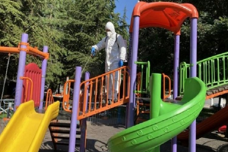Kayseri Melikgazi’de parklara dezenfeksiyon