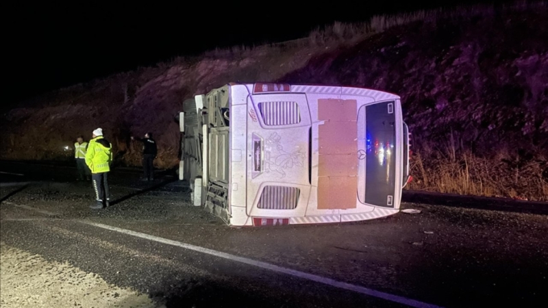 Muş-Bursa seferini yapan B.D. yönetimindeki yolcu otobüsü, Gürün-Pınarbaşı kara yolunun 70. kilometresinde karşı şeride geçmesi sonucu devrildi.