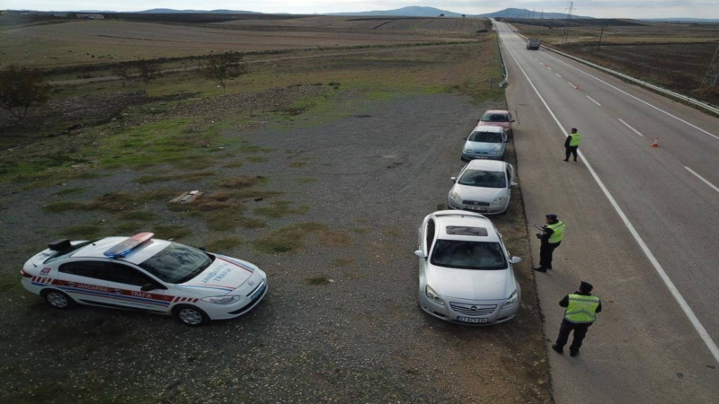 Trafik kazalarının önlenmesine yönelik kontrol ve denetimlerini sürdüren trafik jandarması, Keşan – Enez yolu Siğilli köyü mevkisinde dron destekli denetim yaptı.
