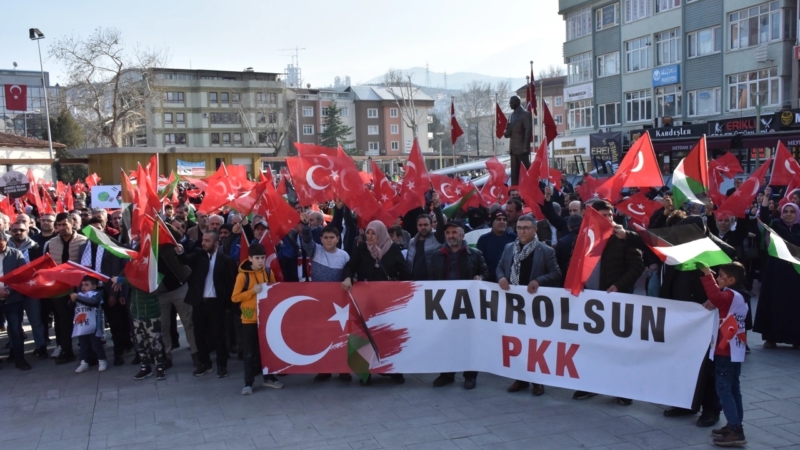 Bursa’nın Kestel ilçesinde, Irak’ın kuzeyindeki Pençe Kilit Harekatı bölgesinde şehit olan 12 askeri anmak ve İsrail’in Gazze’de saldırılarını sürdürdüğü Filistinlilere destek vermek için yürüyüş yapıldı.