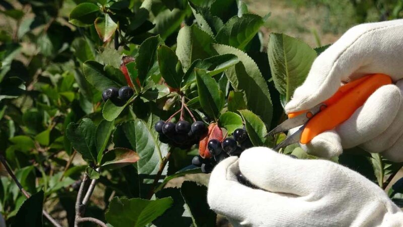 Tokat’ta bulunan iki yetiştiriciden biri olan Murat Akdağ, aronya toplamaya başladı.